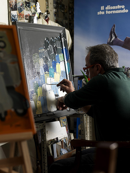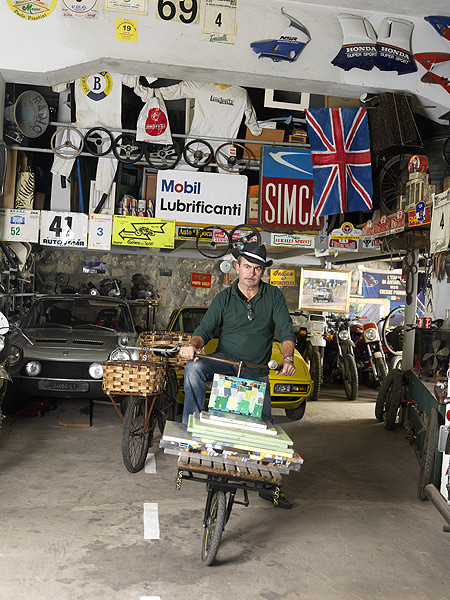 Tra bar e ritrovi, preferisco il mio studio (chiamiamolo così) ci passo molto tempo della mia giornata a dipingere tra ricordi e vecchi rottami dai quali prendo ispirazione per le mie opere, abbinandoli a luoghi piacevoli dove spesso mi reco ad osservare la natura che ci regala questi meravigliosi paesaggi che di settimana in settimana cambiano aspetto. Dipingo per la maggior parte della mia giornata così tra pennelli colori e cose del passato il tempo vola via. Le mie opere vanno in giro per il mondo dove vengono apprezzate in particolar modo da coloro che sono attratti da una grande passione ; (l'automobile) attualmente sono in esposizione da Luzzago Art Gallery (Brescia) e in altre gallerie di Italia